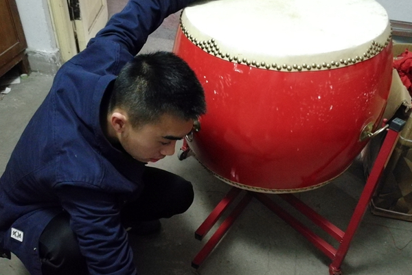 鼓队队员和志愿者们到达鼓室后,鼓队队长为大家介绍相关情况,清点数量,将本次活动细分。男生负责将鼓搬出,摆放到空旷位置,女生负责打扫鼓面灰尘,将鼓边缘的污渍擦去,并且对鼓架子进行清洁。之后负责人注意到腰鼓,志愿者们同时对腰鼓进行整理以及擦拭,为不久之后的演出做准备。