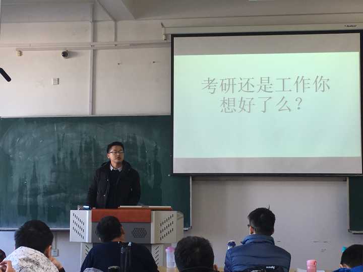 12月7日上午10时整,动力公司20150341及20150342班在21b507教室开展关于“读研还是工作?”的主题团活。本次活动以讲座形式进行,研一学长杨超然应邀出席讲座。20150341及20150342班全体成员参与活动。