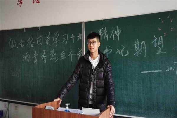 活动以党的十九大胜利召开,总书记明确了我国新时代发展方向,新时代优秀团员,应该主动学习了解习近平总书记治国理政新理念新思想新战略,为国家事业做出的贡献为背景,分为两部分:一、解读十九大报告12个亮点。二、讨论,学习领会十九大精神。曹景川在活动中解读了十九大报告,并提出团员要凝心聚力不负总书记希望的口号。活动期间刘坤鹏同学提出深刻问题,引起讨论。