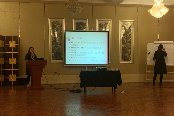 上午9时整,同学们进入北大荒厅,此次培训讲师是两位来自黑龙江大学研二员工,在开讲前先对同学们进行前测试以掌握同学们对于防艾的了解。接下来是自我介绍,三所不同高校员工四人组成一队,上台介绍,紧接着讲师开始培训,首先介绍红十字会起源与发展,而后介绍其作用与原则,最后就艾滋病与艾滋病病毒的产生,传染,危害以及防治进行详细阐述,并指出青少年患病比重在增加,老员工应提高警惕,注意预防艾滋,合理使用安全套。在培训结束前进行后测试以比对同学们是否更加了解防艾。