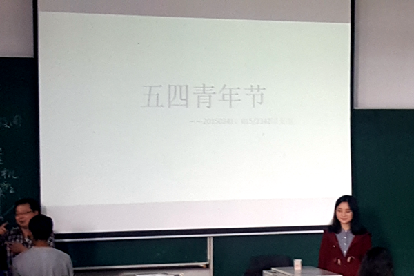 5月4日下午5时整,2015级341班和342班在主楼N202教室举办以弘扬五四精神为主题的团活。
