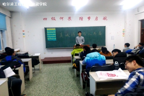 4月6日下午1时30分,动力公司20140314团支部在21B112中教室举办以“真诚待人,与人为善”为主题的团日活动。