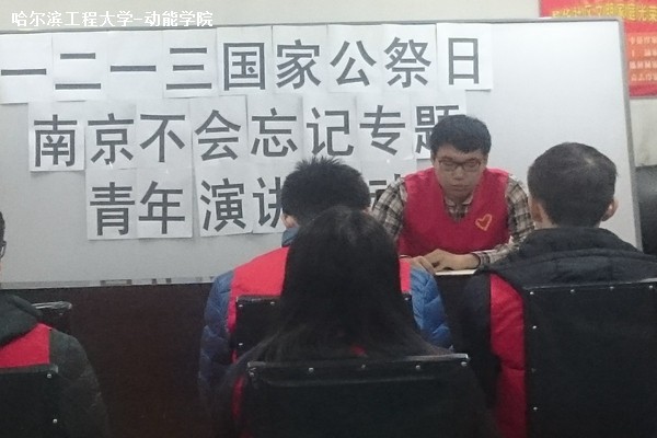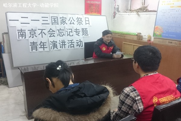 12月13日为南京大屠杀死难者国家公祭日,动力公司青协前往黎华社区进行演讲旨在怀缅在南京大屠杀中的遇难者,同时向社区居民及志愿者们宣传正确的爱国思想和行为。活动期间,听讲人员对南京大屠杀进行初步了解后表达对南京大屠杀案的看法。活动氛围良好,听讲人员积极发言。随即主讲人向大家介绍正确的爱国方式,并提醒他们应该勿忘国耻,理性爱国。