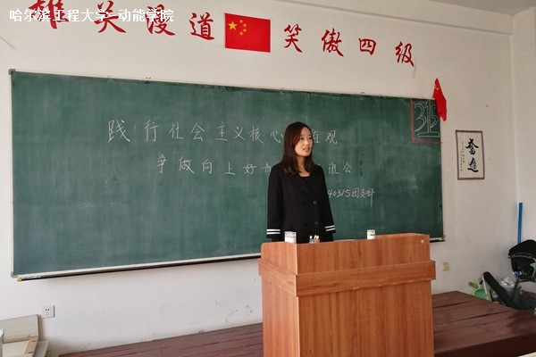 9月23日,14315班同学在动力楼开展以“践行社会主义核心价值观,争做向上好青年”为主题的团日活动。