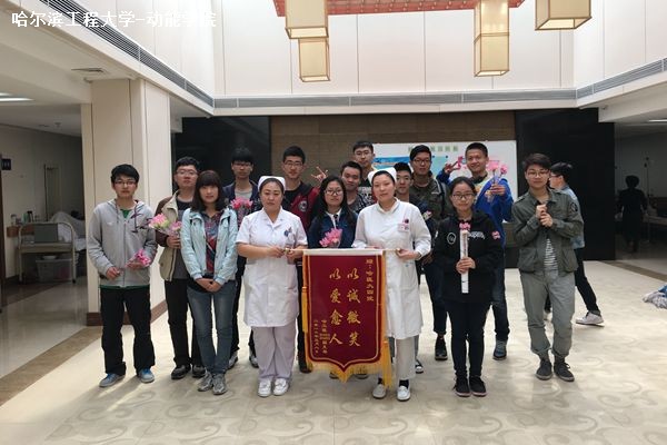 5月8日上午8时整,动力公司20140313班和20140315班举行“关注红十字日,传递微笑力量”主题团活。在0313班团支书孙奕晗和0315班团支书秦蕾的带领下,313班及315班部分同学前往哈尔滨医科大学附属第四医院向医生和患者送去祝福与关怀。