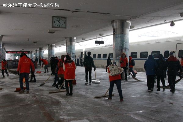 12月3日9时30分,为响应"12.5"世界志愿者日,动力公司青协于哈尔滨火车站开展志愿扫雪除冰活动,本次活动由青协副部刘刚带队,部分青协成员参加本次活动。