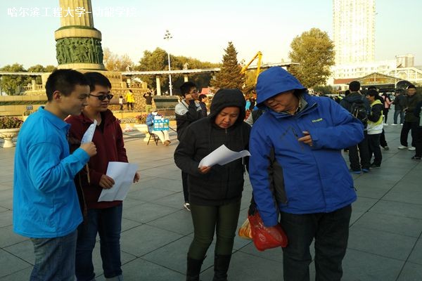 全体成员从奥列霍夫广场出发,均分为六组,沿53路公交车站点进行长跑接力活动,终点直至哈尔滨防洪纪念塔,全程约为7.6公里,全体成员积极参与,竭尽所能跑完自己的路段。每组成员到达一个间歇站时,会向过往行人宣传预防癌症的相关知识及注意事项,同时我们也会为感兴趣的路人发具体事宜的传单。