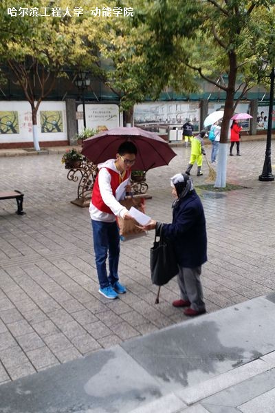 上午8时整,志愿者们在奥列霍夫广场准时集合,乘坐13路公交车前往中央大街进行公益活动。在中央大街上志愿者们开始发宣传爱粮日的公益传单,并对路人们进行爱粮日的讲解和倡导。在活动过程中,不乏有部分市民表示平时对粮食的节俭并会将这种精神坚持下去。在志愿者们宣传爱粮日的过程中,同样有许多小孩学到要节约粮食的精神。通过本次活动,志愿者们也表示会在平时宣传和发扬这种节约粮食的精神。在活动最后,志愿者们在防洪纪念塔下合照留念。