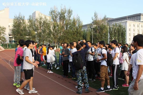 9月17日16时20分,动力公司新生接力赛于南体育场开赛。本次比赛由动力公司体育部组织,2015级新生每班由十名同学参加,分为两组以纵队分别站立在跑道两侧。