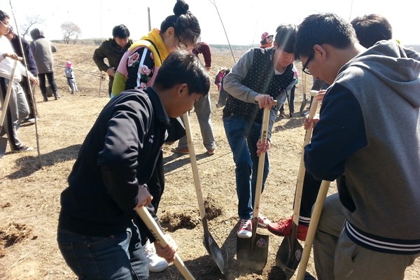 经主办方的统一安排,全体参加活动的人员共同乘车来到了距江北50公里的杏林村。在那里,活动主办方请来了农林及环境领域的专家为活动成员讲解有关于雾霾及植树的相关知识。随后活动进入分组植树环节。服务队被分为3组,在全部30多组中显得并不起眼,但他们在认真理解前面专家的讲解后,互相配合、分工合作,展现出了工程学子良好的精神风貌,他们吃苦耐劳的品格以及对工作的积极态度收受了主办方的称赞与好评。