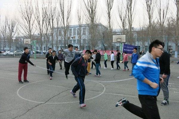 4月19日上午9时整,动能公司的跳绳队伍于军工操场参加由公司举办的跳大绳比赛。比赛队伍分为两支,其中一支为五男五女齐跳,另一支为十男十女轮跳,两支队伍的队员经过赛前约一小时的热身,随时准备开始比赛。