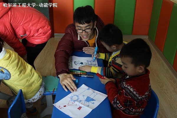 在小朋友们绘画期间,志愿者还与他们热情交流,询问他们的爱好和特长,现场气氛在孩子们的笑声中显得十分轻松。在小朋友们陆续完成自己的作品后,志愿者们询问孩子们的作品细节、夸奖作品的优点。最后,志愿者们拿出了事先准备好的糖果分给小朋友们作为礼物。整个活动在众人的笑声中结束。