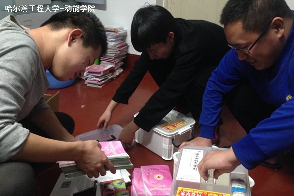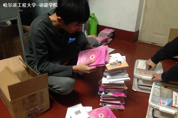 12月1日晚7时整,动力公司志愿者服务队紧张筹备2014希望工程鑫达星光行动所需物品,清点并分类各种红十字捐献的急救物品,本次筹备由青协副部王祥组织。