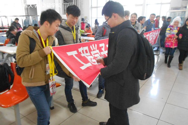 午餐前,院系领导及员工干部们来到小美食堂。在经过详细的活动部署后,动力公司员工会主席刘睿带领参加活动的同学拿上工具,按照计划擦拭餐桌油污。同时组织活动的各位公司领导也亲自“上阵”,与其他参加活动的同学一起用行动号召大家文明就餐。同学们在小美食堂大厅也拉起了标语横幅,并号召员工在印有“文明就餐公约”的宣传条幅上签名留言。在严密的安排下本次文明就餐活动有序进行。